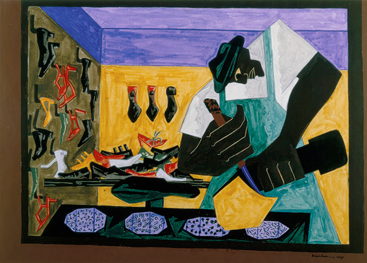 "جیکوب لورنس" Jacob Lawrence از مشهورترین نقاشانِ آمریکاییهای آفریقاییتبار بود که نام کوبیسم پویا را برای سبک کاریاش انتخاب کرده بود. شهرت وی به واسطه تصویرگری مدرنیستی از زندگی روزمره و همچنین روایتهای حماسی تاریخ و شخصیتهای آفریقایی-آمریکایی ایجاد شد. "لورنس" در زمینه ترجمه و قصه گویی نیز فعالیت داشت و شانزده سال در دانشگاه واشنگتن به تدریس هنر پرداخت.