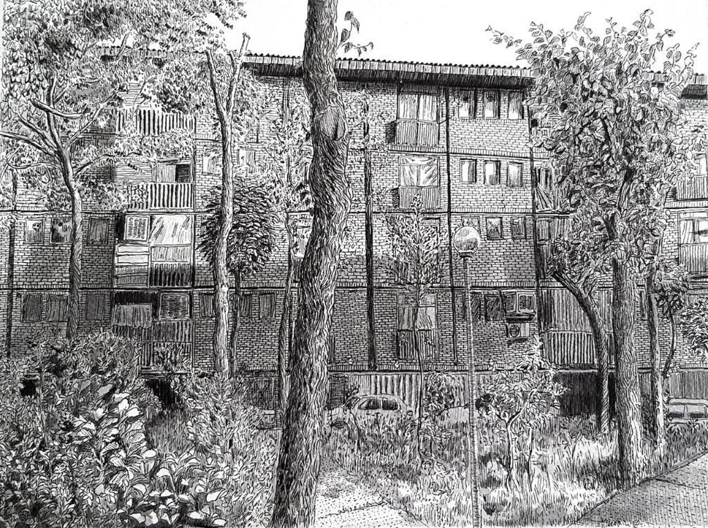 رخنه. آرزو شهدادی. راپید و آب مرکب بر روی مقوا. ۱۳۹۸. عکس: سایت گالری محسن