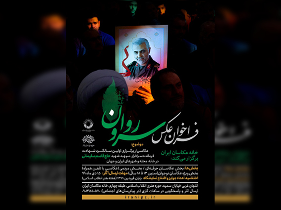 فراخوان عکاسی از برگزاری اولین سالگرد شهادت فرمانده سرافراز، سپهبد شهید حاج قاسم سلیمانی، در خانه، محله و شهرهای ایران و جهان با عنوان «سرو روان» از سوی خانه عکاسان ایران منتشر شد.