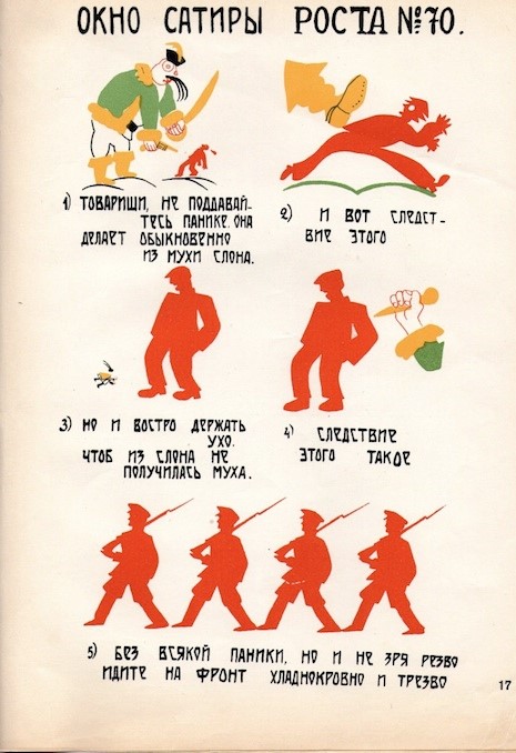 از سال 1919 تا 1921 نوعی پوستر به نام پوستر ویترینی توسط هنرمندان سازمان تلگراف روسیه که ارگان خبری دولتی شوروی بود منتشر می شد که نوعی پوستر شابلونی کاریکاتور مانندی بود که سادگی تولید، امکان توزیع سریع آنها را افزایش می داد و این نوع پوستر به عنوان ابزاری تاثیرگذار و فراگیر نقش مهمی در جریان انقلاب بر عهده داشت. این آثار همانند لوبرک های دوره تزاری روی چوب چاپ می شدند و خلاصه اخبار روز را در پشت ویترین مغازه ها برای مشاهده مردم قرار می دادند.