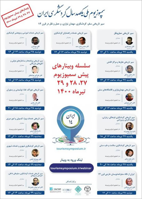 به گزارش روابط عمومی مرکز تجسمی حوزه هنری به نقل از ایسنا، سمپوزیوم یکصد سال گردشگری ایران با محورهای «سفر و حمل و نقل»، «اقامت و مهماننوازی»، «پذیرایی، غذا و نوشیدنی»، «جاذبهها و مقاصد گردشگری» و «خدمات مسافرتی و گردشگری»، در ۲۳ کار گروه تخصصی در راستای اهداف تعیینشده گام برداشته و به صورت آنلاین و حضوری در ۲۷ و ۲۸ مهرماه امسال برگزار میشود.