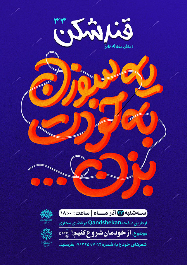 «قندشکن» سی و سوم، سهشنبه 23 آذرماه، ساعت 18 به صورت محدود و با رعایت شیوهنامههای بهداشتی در حوزه هنری یزد برگزار خواهد شد.
