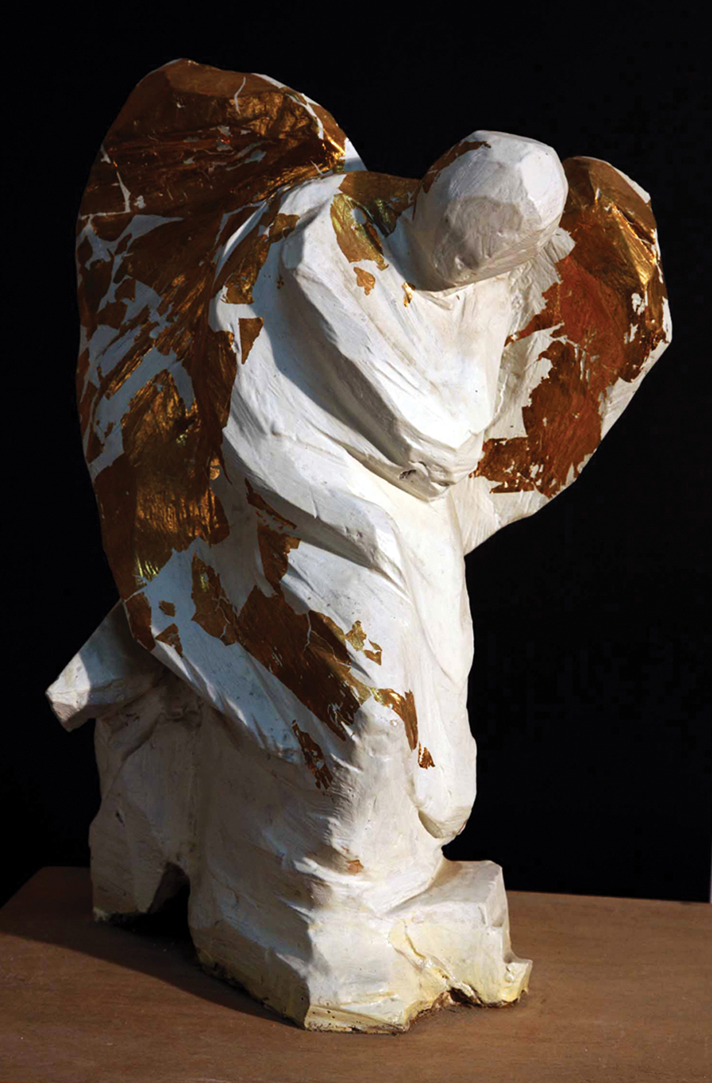 با نگاهی به آثار هنری و به خصوص مجسمه در دوره رنسانس در غرب، کاراکتر فرشته برای معنویت بخشیدن به آثار مورد استفاده قرار می گرفت. هنرمندان ایرانی نیز با تغییراتی در فرم و هویت بخشی متفاوت سعی در ارائه نمونه های مدرن تری از شخصیت فرشته با برداشت هایی شخصی بر مبنای معیارهای اعتقادی خود نمودند. آثار خلق شده با این مضمون در سال های ابتدایی انقلاب و دفاع مقدس که بیانگر نوعی تشخص معنوی برای این دو رخداد می باشد، گویای چنین برداشت هایی از شخصیت فرشته است.