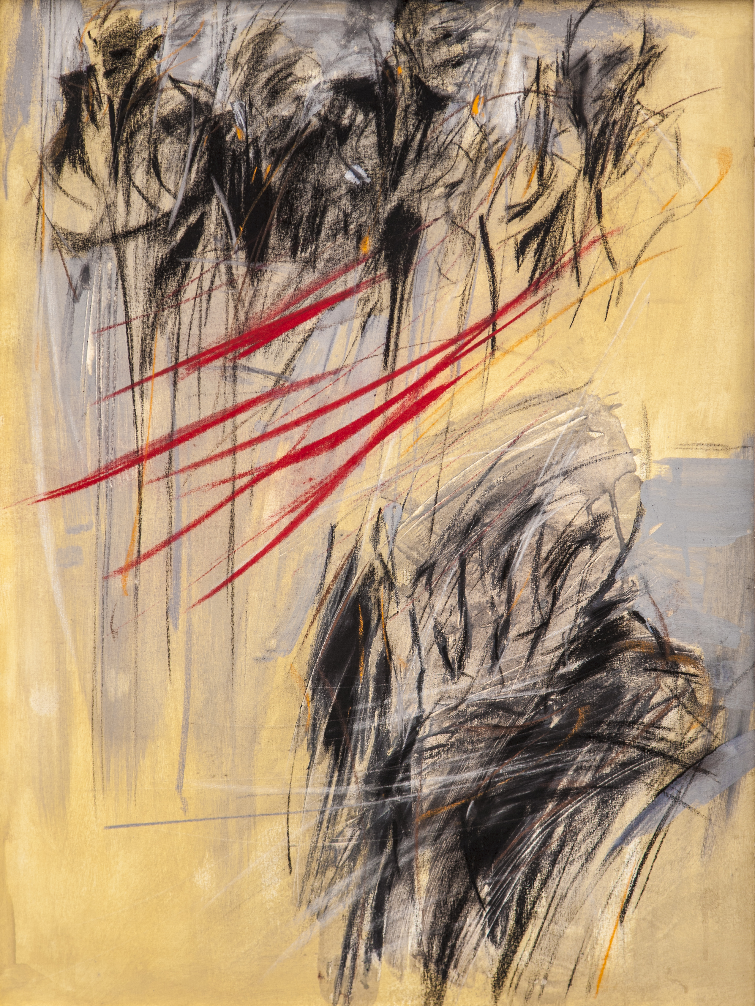 او با اشاره به آنکه دستههای عزاداری امام حسین (ع) و هیاتهای مذهبی را به عنوان موضوع خلق اثر خود انتخاب کردهبود گفت: اکسپرسیو آدمهای شرکت کننده در هیاتهای عزاداری و حالتهای آنها را مدنظر قرار دادم و سعی کردم، حال و هوای اجرای کار نیز حفظ شود و حالتی انتزاعی به اثر دهد. تکنیک کار با استفاده از زغال، اکرولیک و پاستل بود.