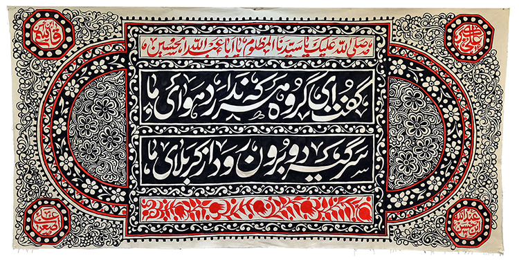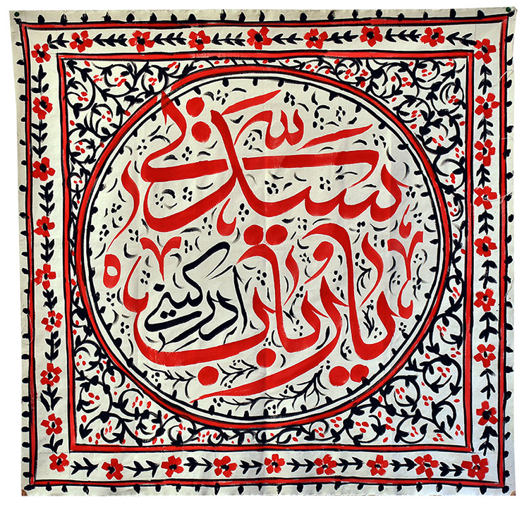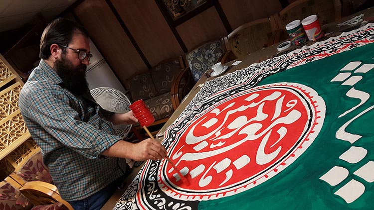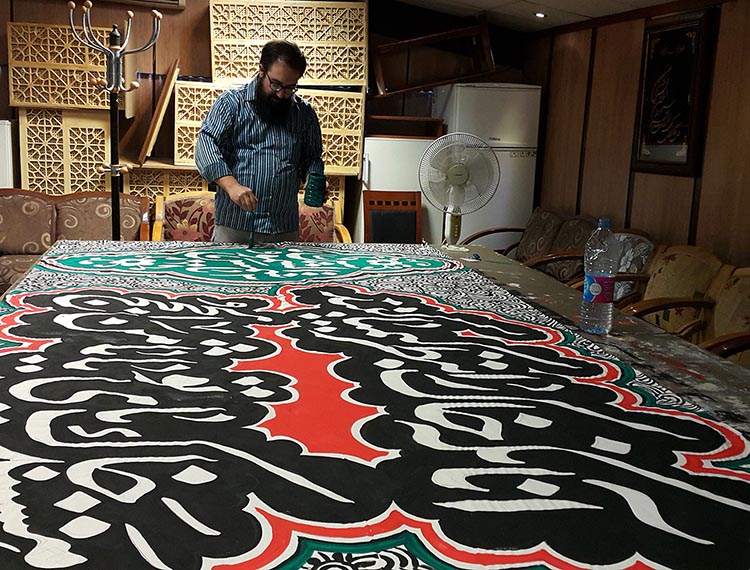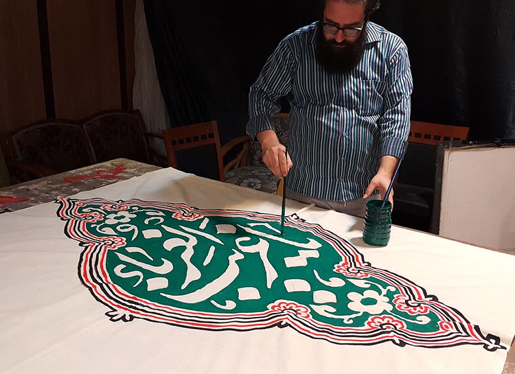 « بررسی کتیبه های قلمکار دوره های مختلف از قاجار تا به امروز و احیا کردن این پارچه ها این بار به صورت دست نویس ایده اصلی شکل گیری این آثار هستند. در مواجهه با این سفارش خیلی زود به جمع بندی رسیدم ولی طرحی از قبل آماده نکردم و خیلی بداهه کار را جلو بردم. با این حال همه چیز دقیقا طبق صحبت های اولیه با سفارش دهنده و همان منطق پیش رفت. مسلما طیف گسترده ای از اقشار جامعه مخاطبین این مجموعه هستند چرا که حاضرین در همچین جلساتی از اقشار گوناگون جامعه کنار هم جمع می شوند.
