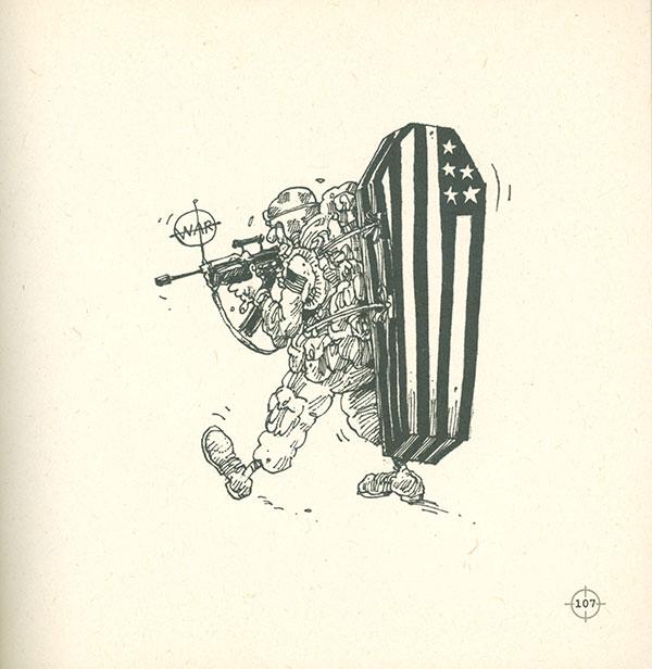 در جایجای کتاب،شجاعی سعی میکند که استثمار ذهنی مردم آمریکا تـوسط قـدرتهای سیاسی آن کشور را به بینندهاش نشان دهـد.آنچه بیان این کتاب را بـه شـدت تیز و برنده میکند،همدردی و مشارکت ذهـنی شـجاعی با تنهاییها و سردرگمیهای سرباز آمریکایی در سرزمینی غریبه است.تاکیدی که او بر عدم تطابق و مـیل فـردی سربازان با خواست میلیتاریستی حـکومت آمـریکا مـیکند،از همان جنس مـوضعگیریهایی اسـت که موجب میشود هـنوز شـجاعی را کاریکاتوریستی سیاسی بدانیم.