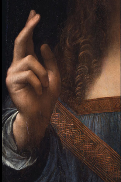 این اثر که مسیح را به عنوان ناجی جهان نشان میدهد، تصویری از نیم تنه مسیح است که در دست راست یک گوی کریستالی دارد و دست چپش را به نشانه دعای خیر بالا گرفته است. تا مدتها باوری وجود داشت که این اثر خلق شده و برای مدت طولانی وجود داشتهاست اما بعدا از بین رفته.