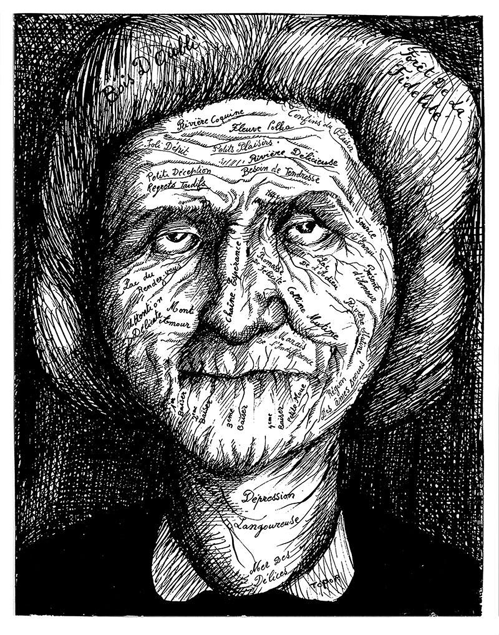 دنیا از دید توپور ترسناک و غیر قابل اعتماد است، حتی جنسیت و عشق هم دردناک و دلهره آورند، نه لذت بخش یا عامل رستگاری. او این اضطراب را با خلق دنیایی سیاه و سورئال نشان می دهد، سورئالیسم او از جنس غریب ترین کابوس های بشری است و نه رویا؛ که انگار رویای فرهنگ و تمدن اروپایی بعد از جنگ جهانی دوم به کابوس تبدیل شد. او به همراه “فرناندو آرابال” شاعر اسپانیایی و “آلخاندرو خودوروسکی” فیلسوف شیلیایی در سال ۱۹۶۲ “جنبش وحشت” را پایه گذاشت تا سورئالیسم را به حرکتی شوک آور و تأثیرگذار بر مخاطبین تبدیل کند. شیوه طراحی توپور به طرز شگرفی قدیمی و کلاسیک می نماید، مثل طراحی ها و تصویرسازی های قرن هجده و نوزده که همین، آنها را رمز آمیزتر می کند و حسی تاریخی به ترس هایش می دهد، همان حسی که تماشای فضا سازی های “بری لیندون” استنلی کوبریک در ما ایجاد می کند، هر دو هنرمند بدبین، ورای تاریخ، تمدن و آیین، شمایل موجود غارنشینی را می بینند که بدویت اش را نقاب می گیرد. هر دو نقاب ها را می درند.