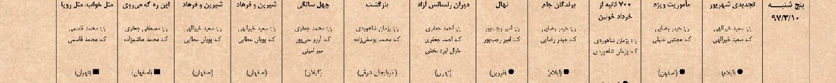 نمایش "بازگشت" به کارگردانی محمد یوسفی‌زاده نیز از ساعت 22 در بوستان آب و آتش و "شیرین و فرهاد" پویان عطایی از ساعت 19:30 دقیقه در خانه هنرمندان برای مخاطبان اجرا می‌شود.