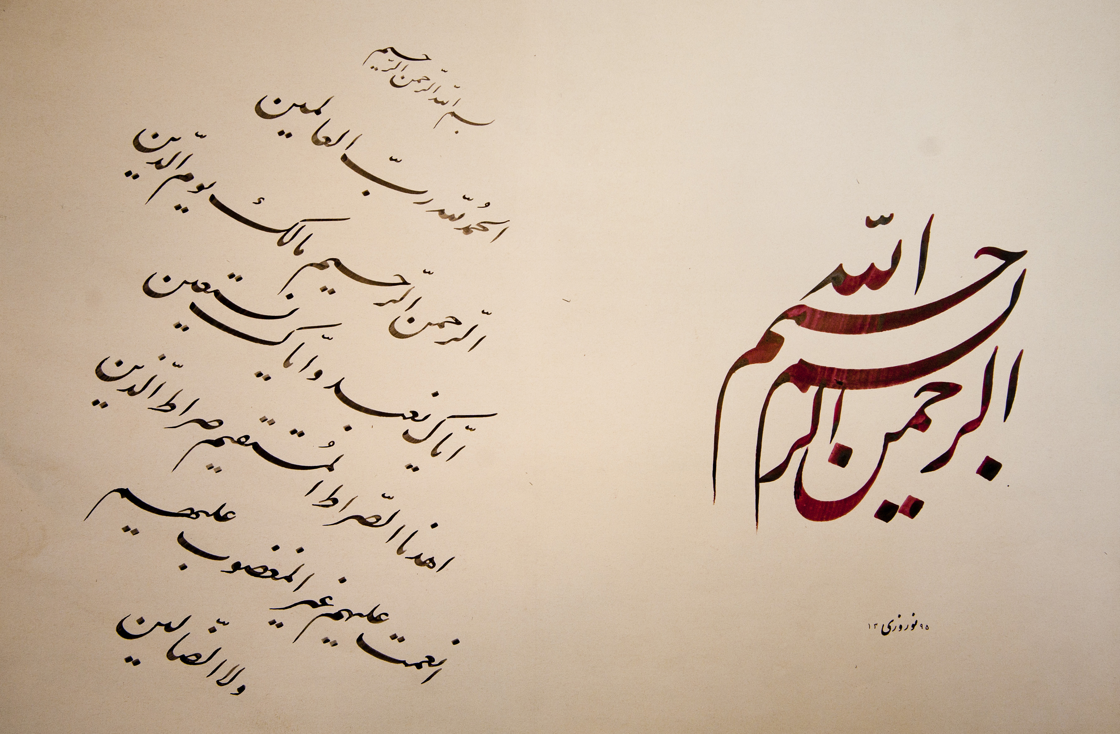 وی تحصیلات خود را در مقطع لیسانس زبان و ادبیات فارسی به اتمام رساند. نوروزی هنر خوشنویسی را به طور جدّی از سال 1364 آغاز نمود و در ادامه نیز موفق به دریافت گواهینامه فوق ممتاز از انجمن خوشنویسان ایران گردید. وی مدرس خوشنویسی دانشگاههای امیرکبیر، آزاد اسلامی و انجمن خوشنویسان نوین است. حشمتالله نوروزی با شرکت در نمایشگاههای گروهی داخلی و همچنین حضور در رقابتهای هنری خوشنویسی و خلق آثاری با موضوعات آزاد ـ تلفیقی و ادبی ـ عرفانی موفق به دریافت عناوین و جوایز متعددی شده است؛ از جمله: رتبه سوم جشنواره هنرهای معاصر اسلامی و رتبه نخست جشنواره کتابت تحریری یک صفحه از قرآن کریم. نوروزی یکی از اعضای انجمن خوشنویسان ایران بوده و کتابت الهینامه ـ نشر مؤلف ـ از جمله آثار اوست.