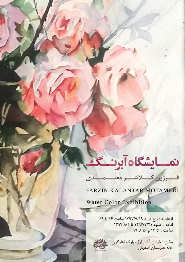 واحد تجسمی حوزه هنری استان اصفهان، اقدام به برگزاری نمایشگاه آبرنگ «آرامش خیال» از مجموعه آثار فرزین کلانتر معتمدی می نماید.