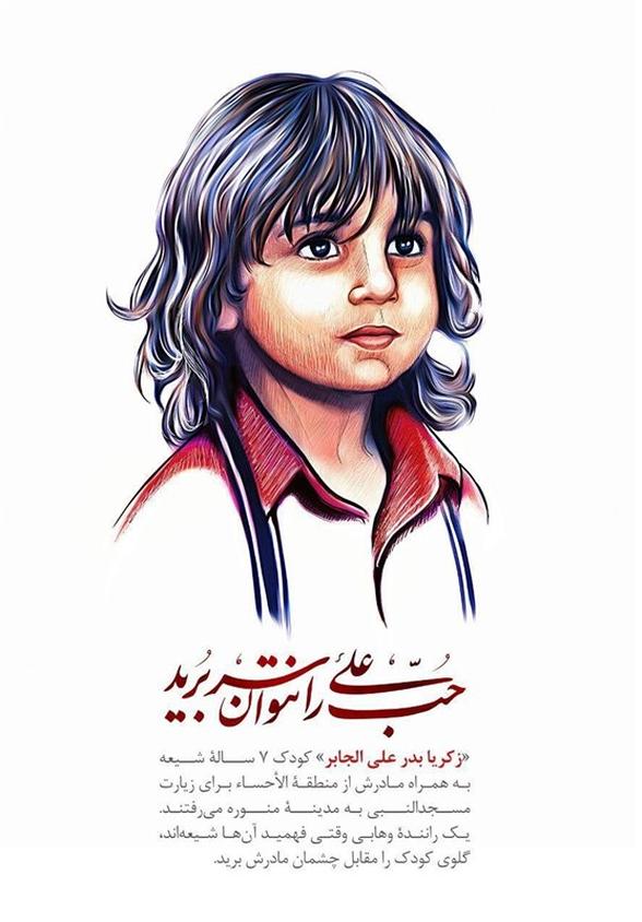 "زکریا بدر علی الجابر" کودک ۷ ساله شیعی همراه با مادرش از منطقه الاحساء به قصد زیارت مسجدالنبی در حال عزیمت به مدینه منوره بودهاند. یک راننده وهابی وقتی فهمید آنها شیعهاند، گلوی کودک را به شکل وحشیانهای مقابل چشمان مادرش درید.