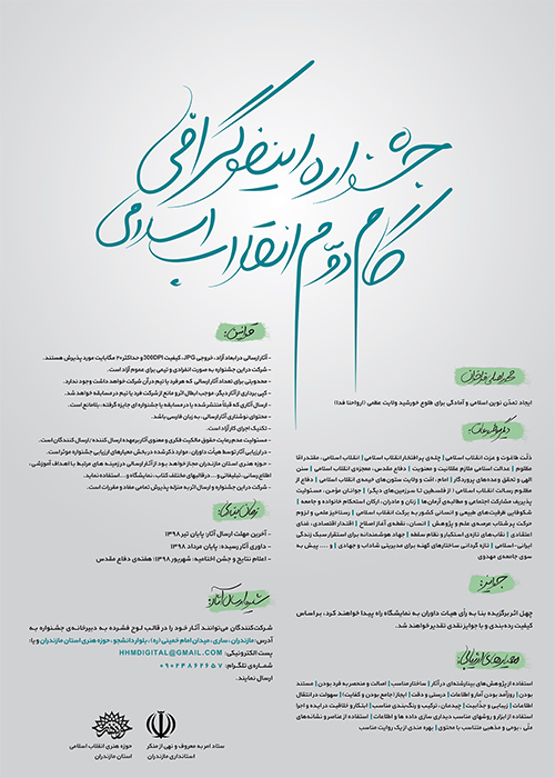 شایان ذکر آنکه فراخوان اولین جشنواره اینفوگرافی گام دوم انقلاب به زودی و پس از تکمیل ابعاد مختلف جشنواره توسط حوزه هنری مازندران منتشر خواهد شد.