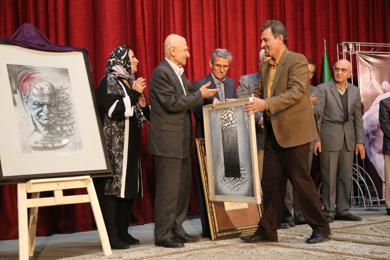 همسر استاد صابر خانم احسن و دخترشان به صحنه دعوت می شوند و همسر کوتاه از همه تشکر می کند و استاد صابر را می ستاید و دختر آغاز می کند کلام را با سلام به کردستان پرگهر و سنندج آرمیده در میان کوها و مردم پر شور پرشعورش ، خیرمقدم می گوید و دلیل آمدنش را تنها به عنوان فرزند و شاگرد و دوست نمی داند ، او می گوید من ترکیبی از این سه هستم ، می گوید به خود می بالم و استاد صابر را گرانبهاترین دارایی خود در زندگی می داند . از خاطرات و آموزه هایش می گوید ، وقتی به لالایی رقص قلم خط بر کاغذ در شب های کنار پدر بودن صحبت می کند بغض اما نش نمی دهد ، می گوید این لالایی ها شاید نصیب هر کس نشود ، پشتکار و سخت کوشی را اموزه دیگر پدر معرفی می کند ، آشنایی با حافظ و مولانا و حکایت های شیرین گلستان و شاهنامه خوانی و در س انسان بودن و اخلاص در انتقال دانش ، از رفاقت بی دریغ ، تواضع ، صداقت و توقع ، گذشت و مردم داری، بی اعتنایی به مال دنیا ، صبوری ، صبوری و صبوری را ، می گوید آمده ام تا بر دستان پرمهر پدر بوسه بزنم و بر دستان شما عزیزانی که امروز مهر بی پایانتان را به ما ارزانی داشتید بوسه بزنم و از حوزه هنری بواسطه این مراسم باشکوه تقدیر می کند .