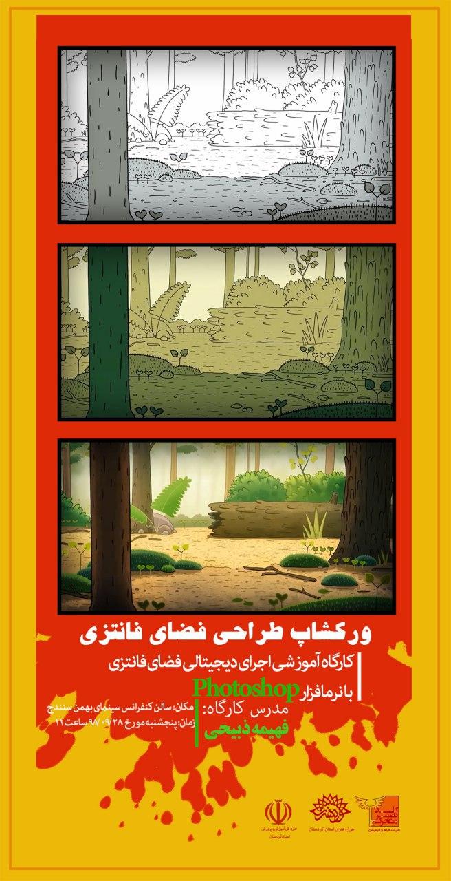 به گزارش روابط عمومی حوزه هنری استان کردستان ، شیلان برهانی مسئول واحد آموزش و پژوهش حوزه هنری کردستان ضمن اعلام این خبر افزود: در راستای ارتقای سطح توان هنرجویان و علاقه مندان رشته های تصویرسازی، انیمیشن، کارتون و کاریکاتور در خصوص شیوه استفاده از نرم افزار فتوشاپ در مراحل شکل گیری فضای فانتزی با حضور فهیمه ذبیحی سلطانی از هنرمندان و مدرسین حوزه هنری و دانشگاه های استان با اجرای یک اثر به صورت حضوری مراحل شکل گیری فضای فانتزی در محل سالن اندیشه پردیس سینمایی بهمن سنندج توضیح داده شد.
